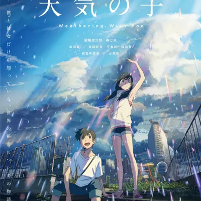 「想要试着去往那道光芒当中」 高中一年级的夏天。从离岛离家出走,来到东京的帆高。 他的生活立刻变得困窘,在度过孤独的每一天之后终于找到的工作, 是为古怪的超自然杂志撰稿。 如同预示着他接下来的命运一般,连日不断降下雨水。 此时,在人潮熙熙攘攘的都市一角,帆高遇到了一位少女。 由于某些缘故,和弟弟两个人一起坚强生活的少女·阳菜。 她拥有不可思议的能力。 「呐,现在开始就要放晴了哦」 雨水逐渐停止,街道笼罩在美丽的光芒中。 那是,仅仅在心中祈祷,就能让天空放晴的力量——
